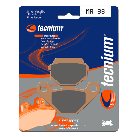 A TECNIUM kifejlesztett egy teljes körű, teljesítményes betéteket és cipőket kínáló termékpalettát minden disciplínához.Sinterelt betétek. Kiváló egyensúlyt nyújtanak az hatékonyság és a tartósság terén a sportteljesítményhez. Az előlap betétek MF (magas súrlódású) a hátsó betétekkel MR (közepes súrlódású) kombinálva kiváló egyensúlyt biztosítanak a fékezés terén. Dánia gyártotta.