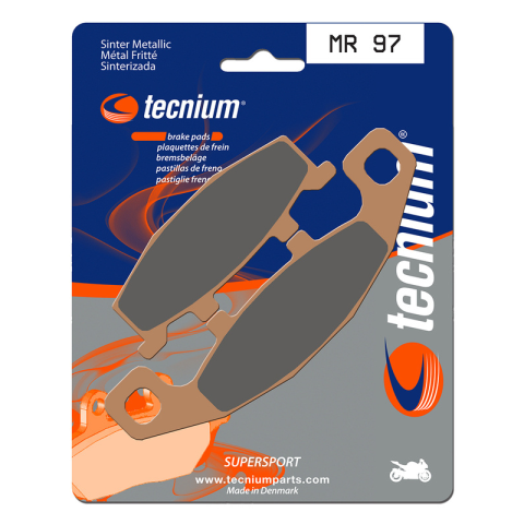 A TECNIUM kifejlesztett egy teljes körű, teljesítményes betéteket és cipőket kínáló termékpalettát minden disciplínához.Sinterelt betétek. Kiváló egyensúlyt nyújtanak az hatékonyság és a tartósság terén a sportteljesítményhez. Az előlap betétek MF (magas súrlódású) a hátsó betétekkel MR (közepes súrlódású) kombinálva kiváló egyensúlyt biztosítanak a fékezés terén. Dánia gyártotta.