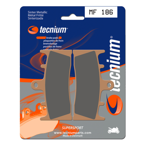 A TECNIUM kifejlesztett egy teljes körű, teljesítményes betéteket és cipőket kínáló termékpalettát minden disciplínához.Sinterelt betétek. Kiváló egyensúlyt nyújtanak az hatékonyság és a tartósság terén a sportteljesítményhez. Az előlap betétek MF (magas súrlódású) a hátsó betétekkel MR (közepes súrlódású) kombinálva kiváló egyensúlyt biztosítanak a fékezés terén. Dánia gyártotta.