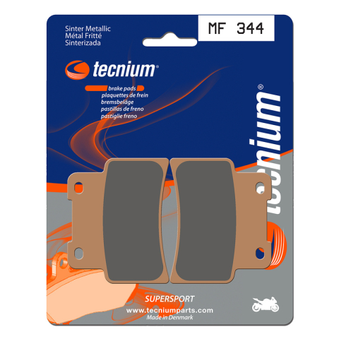 A TECNIUM kifejlesztett egy teljes körű, teljesítményes betéteket és cipőket kínáló termékpalettát minden disciplínához.Sinterelt betétek. Kiváló egyensúlyt nyújtanak az hatékonyság és a tartósság terén a sportteljesítményhez. Az előlap betétek MF (magas súrlódású) a hátsó betétekkel MR (közepes súrlódású) kombinálva kiváló egyensúlyt biztosítanak a fékezés terén. Dánia gyártotta.