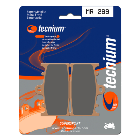 A TECNIUM kifejlesztett egy teljes körű, teljesítményes betéteket és cipőket kínáló termékpalettát minden disciplínához.Sinterelt betétek. Kiváló egyensúlyt nyújtanak az hatékonyság és a tartósság terén a sportteljesítményhez. Az előlap betétek MF (magas súrlódású) a hátsó betétekkel MR (közepes súrlódású) kombinálva kiváló egyensúlyt biztosítanak a fékezés terén. Dánia gyártotta.