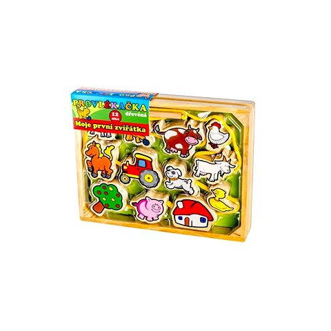 Fűzőcske - anyaga fa, állatok téma, ajánlott 3 éves kortól, 12 darabos csomag, tárolódoboz a csomag része A fa oktató játék - az első állataim használata megismerteti a legfiatalabb gyermekeket az állatokkal, megtanulják felismerni a különböző formákat és színeket. A készlet 12 darabot és egy húrt t