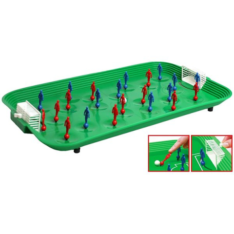 Csocsó asztal - 2 játékosnak, 5 éves kortól alkalmas A Teddies asztali foci egy társasjáték, amely már 5 éves kortól használható. 11 kék és 11 piros játékost tartalmaz, akik rugókon helyezkednek el, így könnyen irányíthatók. A kapust oldalról oldalra mo