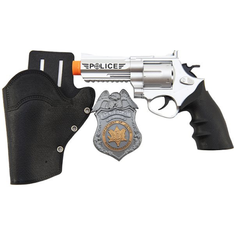 Játékpisztoly - 1 fegyver a csomagban rendőrjelvény a csomag része, anyaga műanyag, fegyver hossza 20 cm, ezüst kivitel, alkalmas 3 éves kortól A műanyag kidolgozás alacsony tömege lehetővé teszi, hogy a gyerekek hosszú ideig játszhassanak. A játék pisztoly kínálatban található típusa pontossággal, egyszerű megtöltéssel és nagy lőtávolsággal