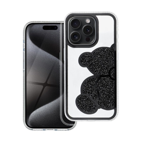 1 kép Teddy Bear iPhone 14 Pro Max csillogó köves tok, fekete
