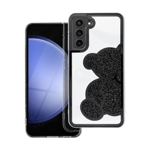 Teddy Bear Samsung Galaxy A35 5G csillogó köves tok, fekete