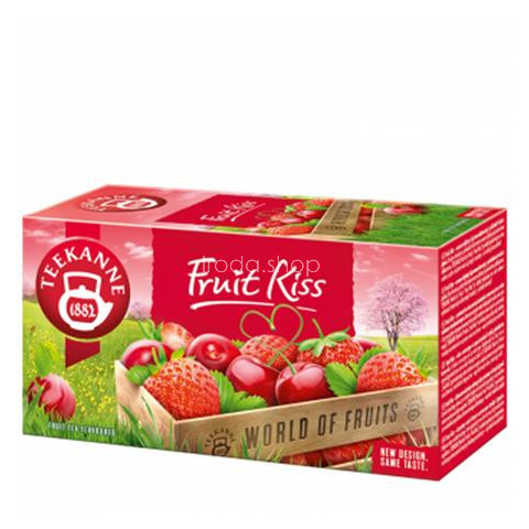 Gyümölcstea, 20x2,5 g, TEEKANNE Fruit kiss, eper-meggy A zamatos cseresznye és az érett eper teljes íze teszi ezt a gyümölcstea keveréket különlegesen ízletes itallá. A TEEKANNE World of Fruits Fruit Kiss édes kényeztetés az egész család számára, fogya