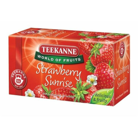 Élvezze a TEEKANNE World of Fruits " Strawberry Sunrise" tea csodálatos élményét - ez a tea természetes gyümölcsök és a napérlelte eper ízének különleges forrázata. Akár forrón, akár hidegen fogyasztja - ez a tea minden alkalommal csodás és zamatos kényeztetés az egész család számára.