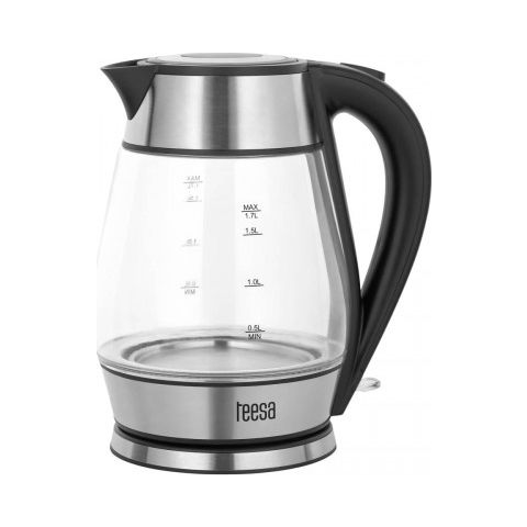 Teesa Elektromos Vízforraló, Üveg + Inox, 2000 W, Fekete, 1,7 L (TSA1512B)