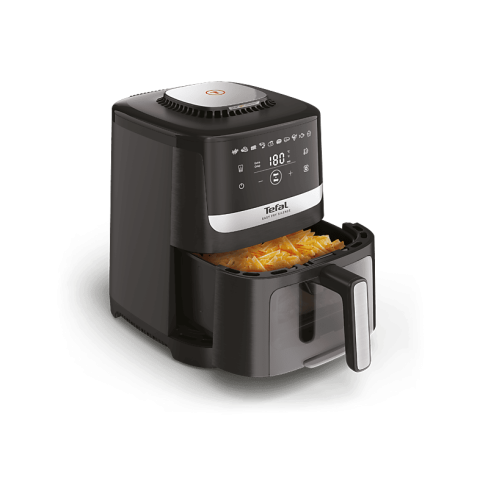 Airfryer - 5 l, 1400–1670 W teljesítmény, 10 előre beállított program, állítható hőmérséklet (40 °C-tól 220 °C-ig), kivehető, tapadásmentes felületű sütőkosár, amely mosogatógépben is mosható, Silent Technology a csendes működésért, Extra-Crisp technológia forrólevegős sütéshez, LCD kijelző, öntött alumínium grillezőrács, időzítő, My Tefal alkalmazás, a csomag tartalmaz egy fedőt a könnyebb tárolás érdekében, fekete szín, 15 év javíthatóság