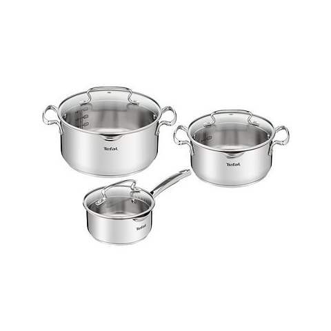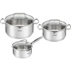 Edénykészlet - gáz, elektromos, indukciós, üvegkerámia és halogén főzőlaphoz, 3 fazék a készletben, mérce, nem éles fémeszköz használatának lehetősége, öntőszegély, sütőben használható és mosogatógépben mosható, maximális sütési hőmérséklet a sütőben 250 °C, edény anyaga rozsdamentes acél, fazék külső felülete rozsdamentes acél, fazék belső felület rozsdamentes acél, fazék nyelének anyaga rozsdamentes acél, fedő a csomagban, ezüst kivitel S