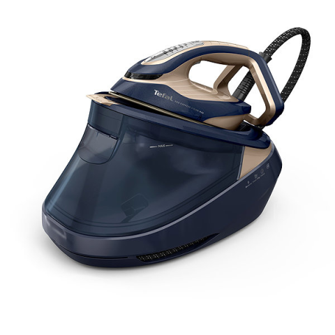 Gőzállomás - függőleges gőzölés, kábeles, 3000 W teljesítmény, gőzkibocsátás 215 g/perc, gőzlövet 820 g/perc, gőznyomás 9 bar, vasalótalp anyaga durilium, kivehető víztartály, spriccelés, termosztát és függőleges gőzölés, ECO mód, anti-drip rendszer (csöpögés ellen) és automatikus kikapcsolás, vízkő gyűjtő a csomag része, tartály űrtartalma 1200 ml, kábel hosszúsága 1,6 m, tömege 5400 g, kék és arany kivitel Tefal GV9910E0 Pro Express Vision Max g