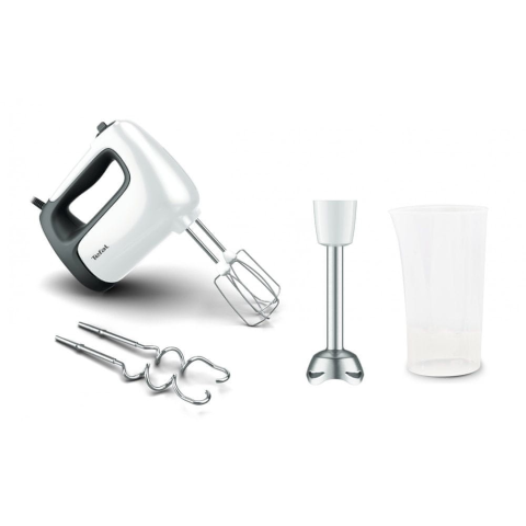 A Tefal Prep'Mix kézi mixer úgy lett megtervezve, hogy minden igényét kielégítse a főzésnél. Ennek köszönhetően a nagy és sokoldalú teljesítmény mindig csak egy karnyújtásnyira lesz Önhöz. 500 W-os, nagyteljesítményű motorral felszerelt elektromos mixer, amely egyaránt kiváló eredményeket biztosít a könnyű és nehéz alapanyagok feldolgozásánál. Fedezze fel a kézi mixert, amellyel a kiváló minőségű rozsdamentes acél habverő lapátoknak és dagasztó spir