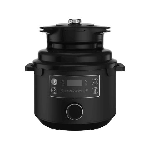 Airfryer - a Turbo Cuisine multifunkciós edényhez, ideális 4 fő számára, 4 automatikus program, Turbo Crisp forrólevegős sütés, űrtartalom 5 l, nem igényel előmelegítést, könnyű tisztítás, több mint 20 recept a társalkalmazásban, speciális kiegészítők hússütéshez, grillezéshez és sütemények készítéséhez (fémrács, sütemény forma, pizza lap, multifunkciós nyárstartozék 3 nyárssal), színkivitel fekete, 15 év javíthatósági garancia Alakítsd Tefal LF