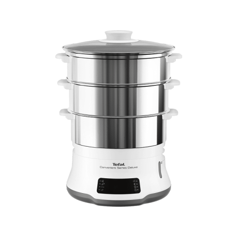 Tefal Convenient Deluxe Vc502D10 ételpároló Pároljon egyszerre akár 3 egészséges és ízletes ételt a gőzölőedényben! Rendkívül könnyű gőzölés digitális vezérléssel és 8 programmal, valamint az intuitív és felhasználóbarát érintőképernyő használatával. Nagyon praktikus a háromfogásos ételek egy főzéssel történő elkészítése a többszintű gőzölésnek köszönhetően. Hosszú élettartamú, kiváló minőségű masszív rozsdamentes acél tálak, 15