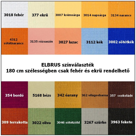 Teflonos, szennytaszító abroszanyag. Szélesség: 160 cm és 180 cm. Előrendelhető, szállítási idő 1-4 hét. A rendelni kívánt szín és méret a lenyíló ablakban választható ki. 180 cm szélességben csak fehér és ekrü rendelhető! Minimális rendelési mennyiség 10