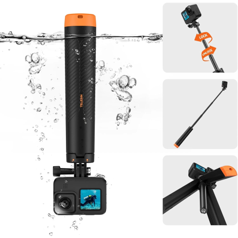 Telesin Vízi Úszó Akciókamera Búvár-markolat / Tripod/ Selfie Bot - 90cmas A TELESIN Floating Tripod Selfie Stick tökéletes választás minden vízi kalandor számára, aki szeretné megörökíteni a legjobb pillanatait. A lebegő kialakítás és az állítható hosszú