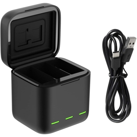TELESIN GoPro HERO9/ Hero10 11 akkumulátor töltő, triplatöltő (GP-BCG-901) GoPro Hero 9 és 10 akciókamerákhoz tervezett professzionális utazó töltő. Tölts egyszerre 3 akkumulátort akár powerbank-ról ! Három akkumulátor egyszerre való töltése és tárolása