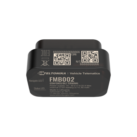 A Teltonika FMB002 OBDII adatok (üzemanyag szint, kilométeróra állása, fordulatszám, stb.) kiolvasására lalkalmas kis méretű, intelligens nyomkövető készülék, 3 méter alatti mérési pontossággal, belső tartalék akkumulátorral. Nagy teljesítményű, érzékeny belső High Gain GNSS antennája lehetővé teszi, hogy a készüléket közvetlenül az OBDII csatlakozóba telepíthető legyen. Rendelkezik beépített gyorsulásmérővel és giroszkóppal is. OBDII csatlakozór