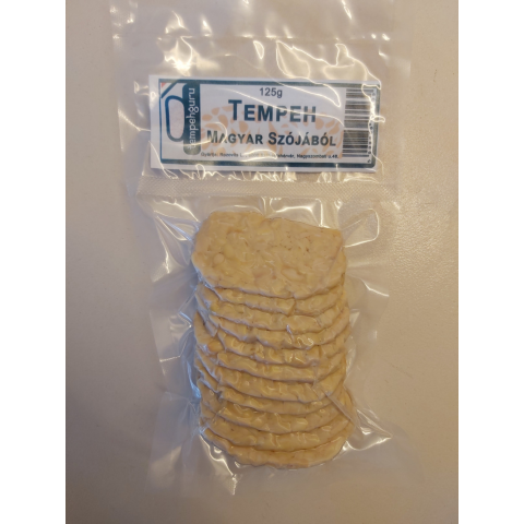 Tempeh szeletek 125 g Szójababból készült szeletelt TEMPEH. Összetevők: Szójabab, víz , gombakultúra (rhizopus oryzea )