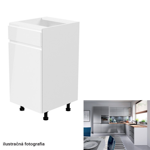 Teljes Tempo Alsószekrény, fehér-szürke extra magasfényű, balos, AURORA D40S1 termékleírás