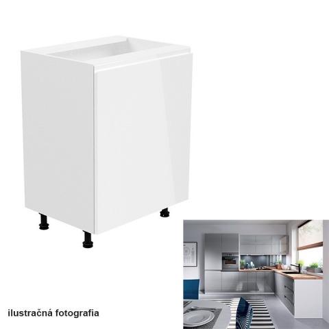 1 kép Tempo Alsószekrény, fehér-szürke extra magasfényű, jobbos, AURORA D601F