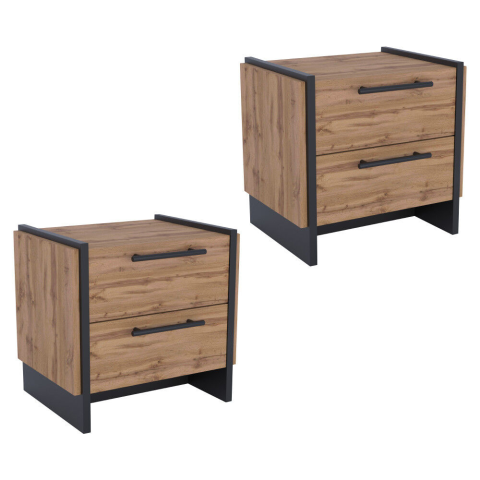 Teljes Tempo Éjjeliszekrény, 2 db-os szett, wotan tölgy/fekete, AMONI 2S termékleírás