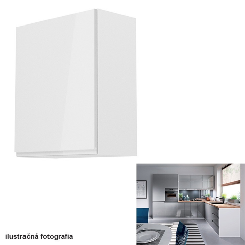 1 kép Tempo Felsőszekrény, fehér-szürke extra magasfényű, balos, AURORA G601F