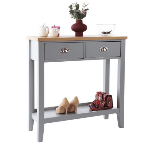 JEREVAN szürke/világos dió konzolasztal - Stílus és funkcionalitás egyben! 🏠 A JEREVAN konzolasztal tökéletes választás otthonodba, ha egy elegáns és praktikus bútordarabot keresel. A szürke és világos dió színkombinációja modern és letisztult megjel...