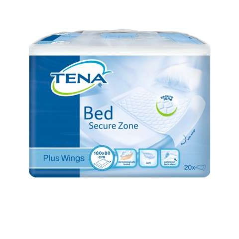 A TENA Bed Secure Zone Plus Wings puha és megbízható, szárnyakkal rögzíthető ágyvédő inkontinencia esetére. A praktikus szárnyaknak köszönhetően az ágytakaró még egy hánykolódó vagy forgolódó beteg alatt sem csúszik el. Nedvszívó magjának és vízálló h...