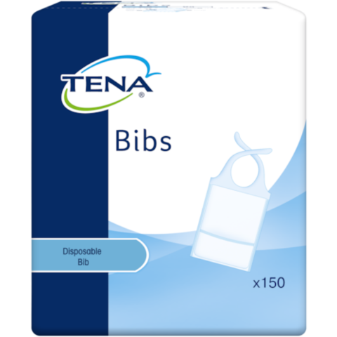 A TENA Bibs praktikus és eldobható papírelőke. Könnyű feltenni, könnyű eldobni.
