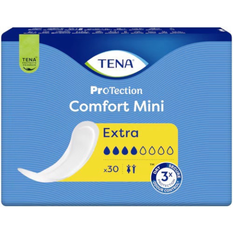 A TENA Comfort Mini Extra betét még erősebb nedvszívó képességgel rendelkezik, és extra védelmet biztosít. Magas szintű biztonság, kényelem és szárazság: így ritkábban szükséges a terméket cserélni és megvásárolni. *Az Odour Control™ szagsemlegesítő