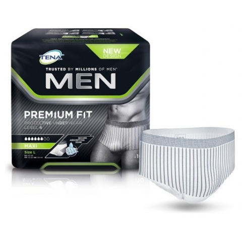 Tena férfi inkontinencia nadrágpelenka Tena Men Level 4 Premium Fit inkontinencia pelenkanadrág férfiaknak Maximális nedvszívó képessége extra védelmet nyújt a szivárgások ellen, emellett pedig mind küllemében, mind illeszkedésében diszkrét alsónadrágr