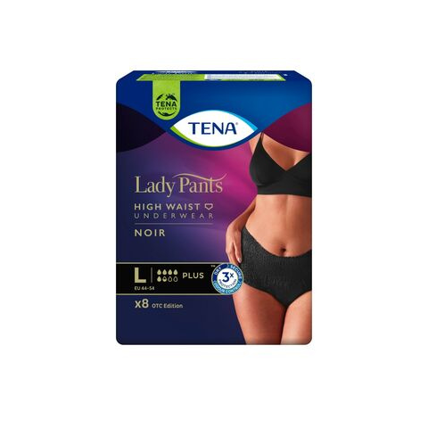 TENA Lady Pants Plus Noir - fekete színű | Inkontinencia-fehérnemű magasított derékrésszel