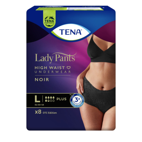 Fekete színű Inkontinencia-fehérnemű magasított derékrésszel Amit visel, az mostantól egyszerre lesz biztonságos és trendi. A TENA Lady Pants Noir egy fekete színű, elegáns inkontinencia-fehérnemű, amely hatékony védelmet jelent középsúlyos és súlyos v