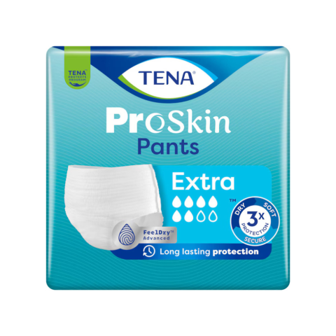Tartós védelem közepes és súlyos vizeletszivárgás esetére, alsóneműkre emlékeztető formában. A TENA Pants Extra olyan, inkontinencia esetére készült pelenkanadrág, amely akár 100%-os védelmet biztosít közepes és súlyos vizeletszivárgás esetén, 2-szer g