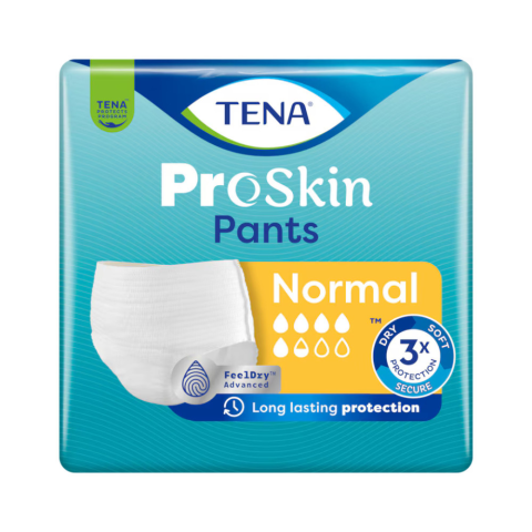 Tartós védelem közepes és súlyos vizeletszivárgás esetére, alsóneműkre emlékeztető formában. A TENA Pants Normal olyan, inkontinencia esetére készült pelenkanadrág, amely akár 100%-os védelmet biztosít közepes és súlyos vizeletszivárgás esetén, 2-szer