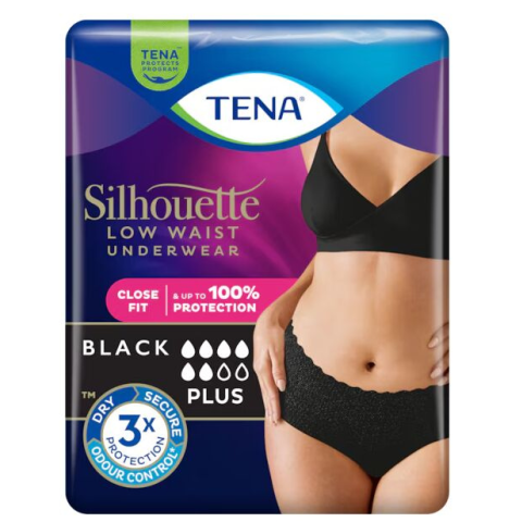 1 kép Tena Silhouette Plus női Inkontinencia-fehérnemű alacsony derékrésszel - M 12db - fekete
