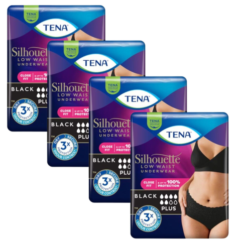 Tedd fel kérdésed a(z) Tena Silhouette Plus női Inkontinencia-fehérnemű alacsony derékrésszel - M 4x12db - fekete termékről!