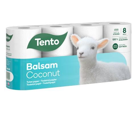 1 kép TENTO Balsam Coconut 3 rétegű, kistekercses, 8 tekercs toalettpapír fehér (229389) (tento229389)