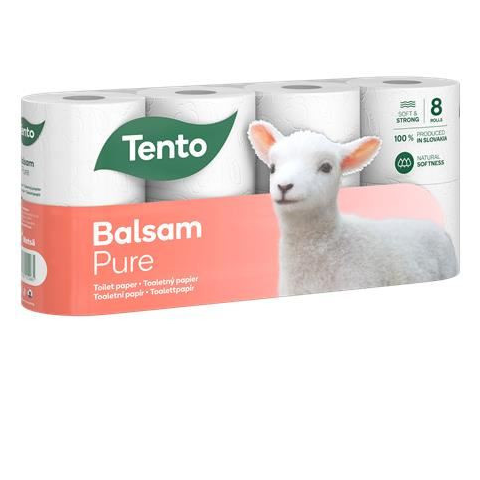 TENTO Balsam Pure 3 rétegű, kistekercses, 8 tekercs toalettpapír fehér (229387)
