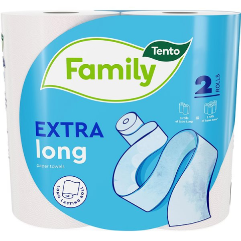 Papírtörlő - kétrétegű kivitel, a tekercs hossza 24 m, 220 lapból áll, 2 tekercs a csomagban Eme TENTO Family Extra Long, 2 db termék leglényegesebb tulajdonságai Az ügyes TENTO papírtörlő jól jön kézszárításhoz, folyadékok feltörléséhez és különféle felületek tisztításához A dupla rétegnek k
