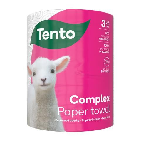 Az új Tento Complex papírtörlő egy innovatív termék melyben 1 rétegű ipari törlőkendő és 2 rétegű papírtörlő sikeresen ötvöződik. Az erős, kék réteg kiválóan eltávolít bármilyen szennyeződést. A két fehér papírréteg szivacshoz hasonló nedvszívó réteg, mely felszárítja és fényesíti a felületet.