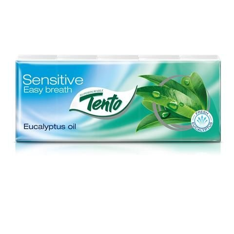 A Tento Sensitive Easy Breath Eucalyptus Oil papírzsebkendő rétegeit az eukaliptusz illatával dúsítottuk, ami megkönnyíti a légzést, garantálja a frissességet és - különösen megfázás esetén - jó hatással van hangulatára.