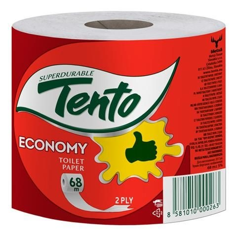 A Tento Economy 100%-ban újrahasznosított papírból gyártott, 2 rétegű, natúr, természetes toalettpapír
