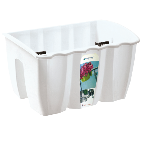 Korlátra illeszthető Crown műanyag balkonláda fehér színben. 39cm