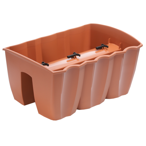 Korlátra illeszthető Crown műanyag balkonláda terrakotta színben. 39cm