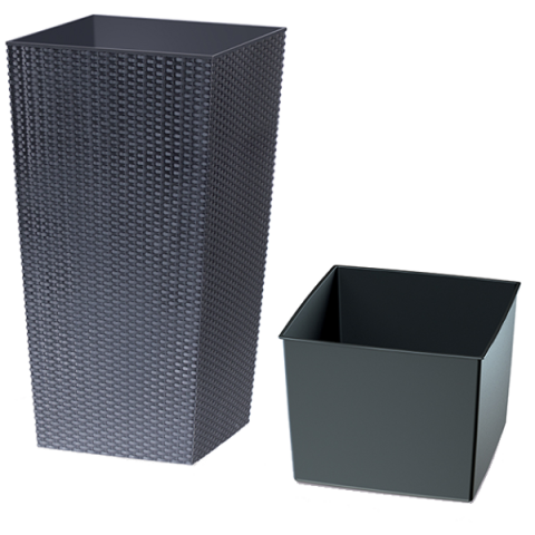 1 kép TERRACOTTA RATO SQUARE RATTAN VÁZA 32X61CM ÜLTETŐ BETÉTTEL SZÜRKE