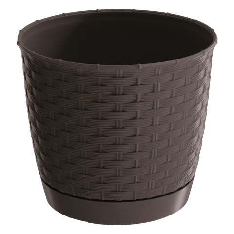 1 kép TERRACOTTA RATOLLA KEREK MŰANYAG CSERÉP +ALJ 14CM BARNA