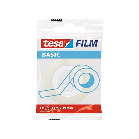 Ragasztószalag - irodai, tekercs hossza 33 m, szélessége 19 mm, alkalmas papír felületekre, átlátszó A Tesa BASIC ragasztószalag univerzálisan használható. Ideális irodai és otthoni alkalmazásra egyaránt. Rendkívül erős ragasztási tulajdonságai és nagy tartóssága teszi kiemelkedővé. Hossza 33 m. A Te